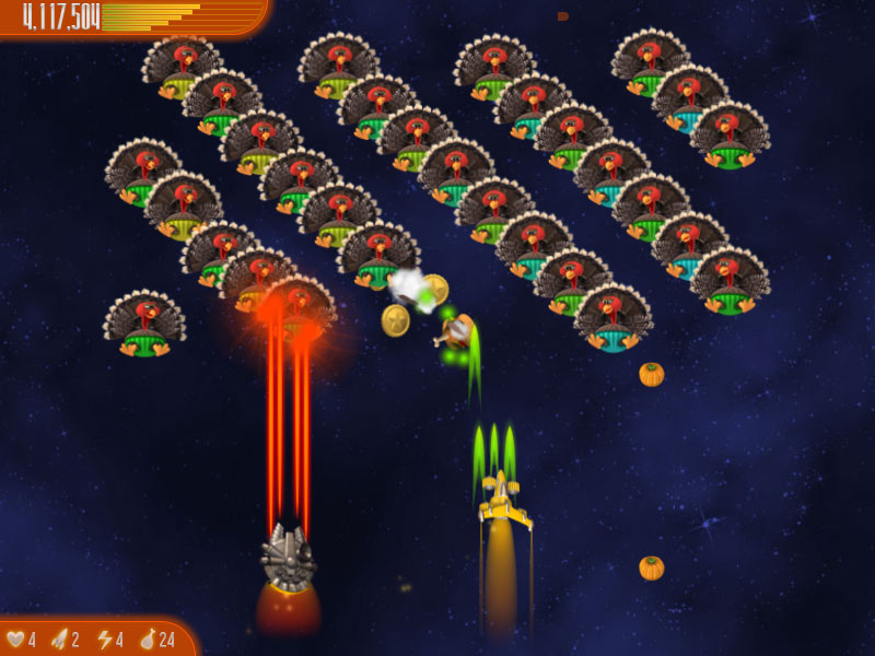It's now time for you to fight for our ancestral right to turkey roast. Will you triumph over the foul fowls? Will mankind ever have Thanksgiving dinner again? Or will you end up as part of the menu in a galactic turkey restaurant?